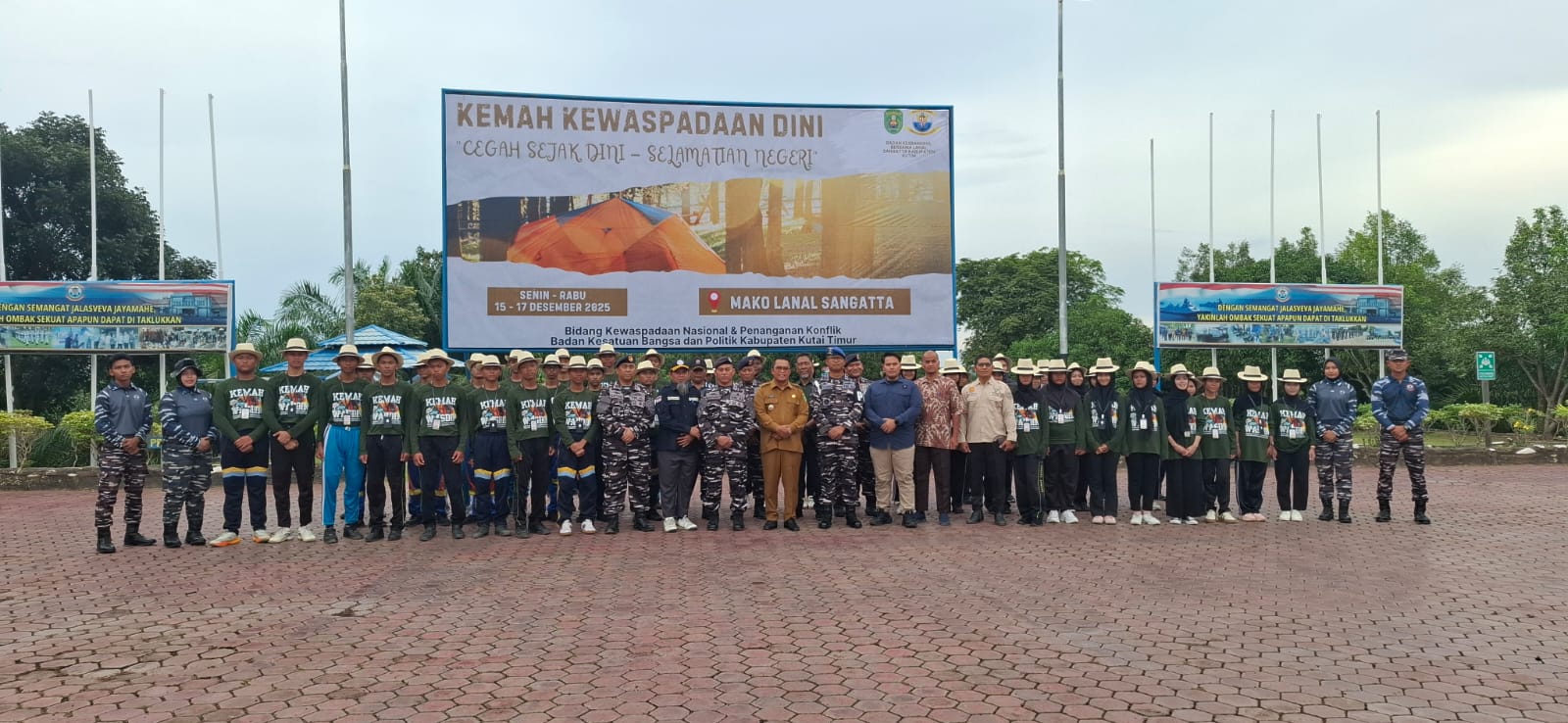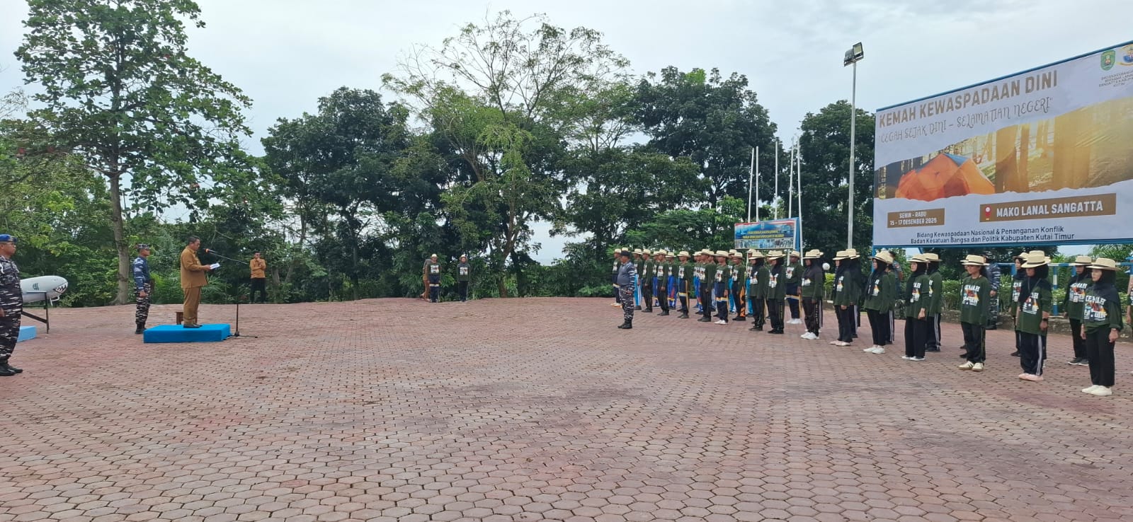 Kutim – Pemerintah Kabupaten Kutai Timur (Kutim) melalui Badan Kesatuan Bangsa dan Politik (Kesbangpol) menggelar Upacara Pembukaan Kemah Kewaspadaan Dini Tahun 2025 yang berlangsung di Lapangan Apel Mako Lanal Sangatta, Senin (15/12/2025) sore.